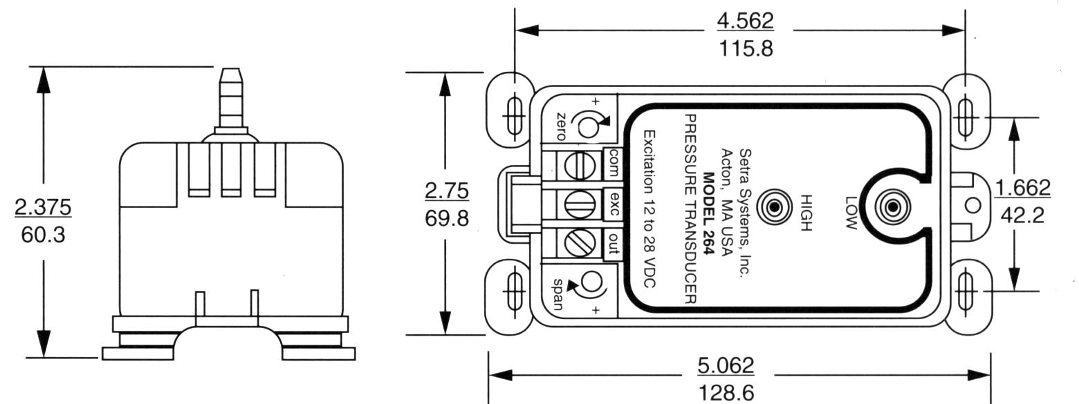 0 to ±0.1, 0.25, 0.5, 1, 2.5, 5" W.C |